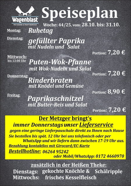 Dazu wechselnde Menüs mit Salat oder Gemüse von unserem Speiseplan: